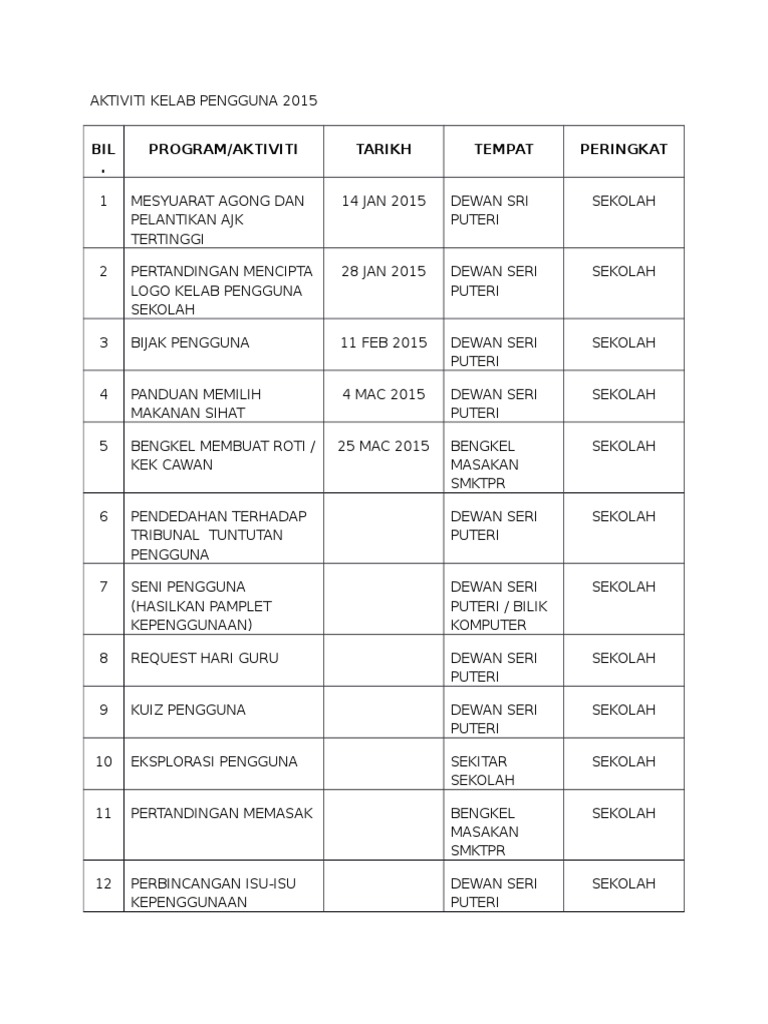 Perancangan Aktiviti Tahunan Kelab Pengguna Sekolah Pdf